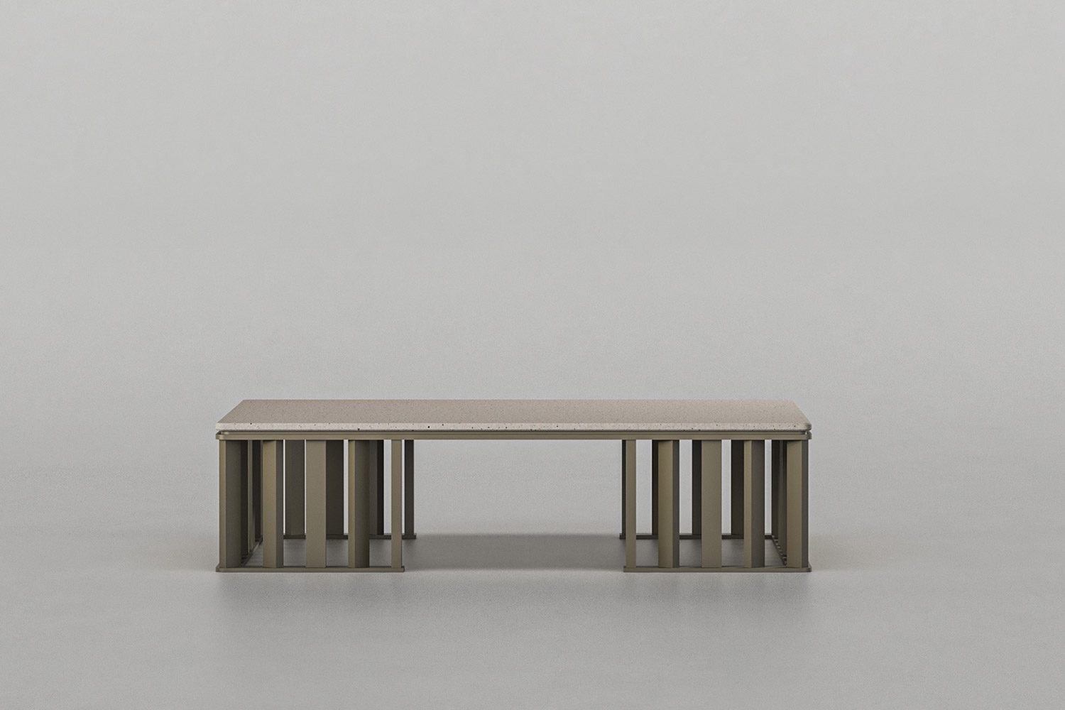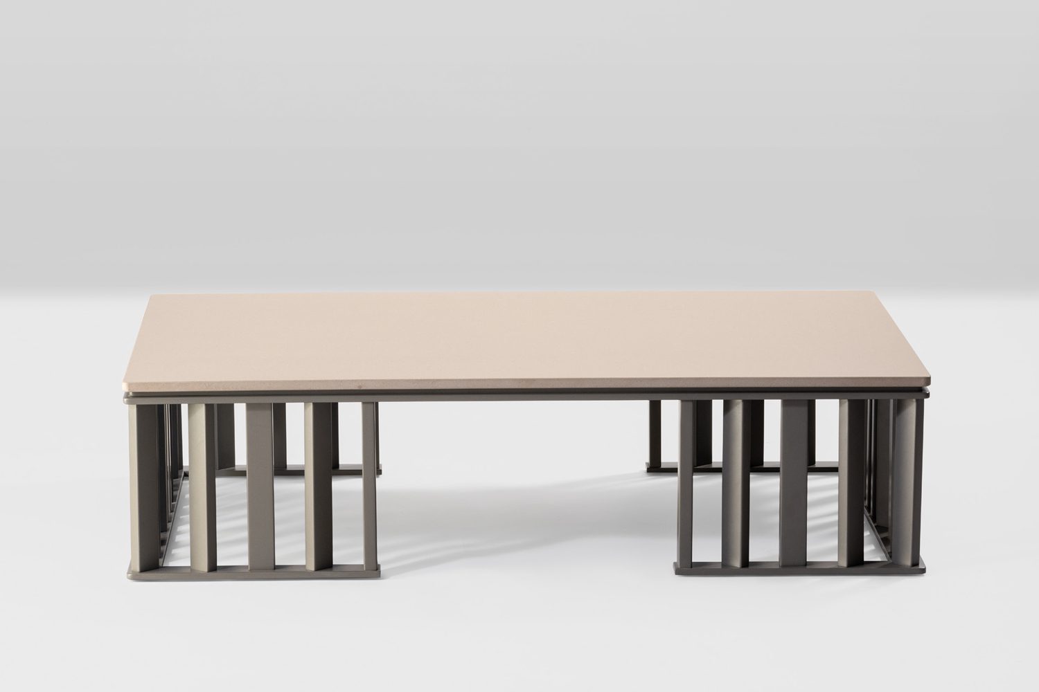 The Ceigo Coffee Table is crafted with sleek metal louvres that complement the Ceigo seating. The metal framework elegantly carries the stone top, integrating durability with an alluring visual appeal, ensuring both functionality and modern appeal for your outdoor spaces.