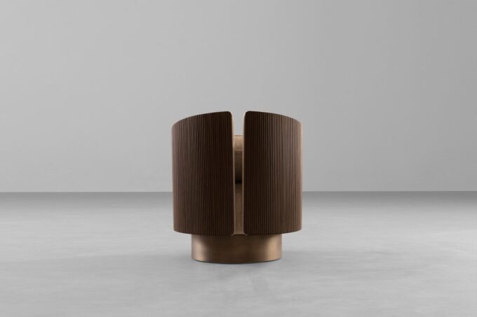 Gesto Lounge Chair symbolises a delightful gesture of functionality and elegance, perfectly adapting to any space. While the comfortable upholstered seat and backrest has a swivel base, the back of the chair is layered in antique metal and eco leather options to choose from. The wooden legs are lined with antique metal on the inside, which accentuates the fine silhouette.