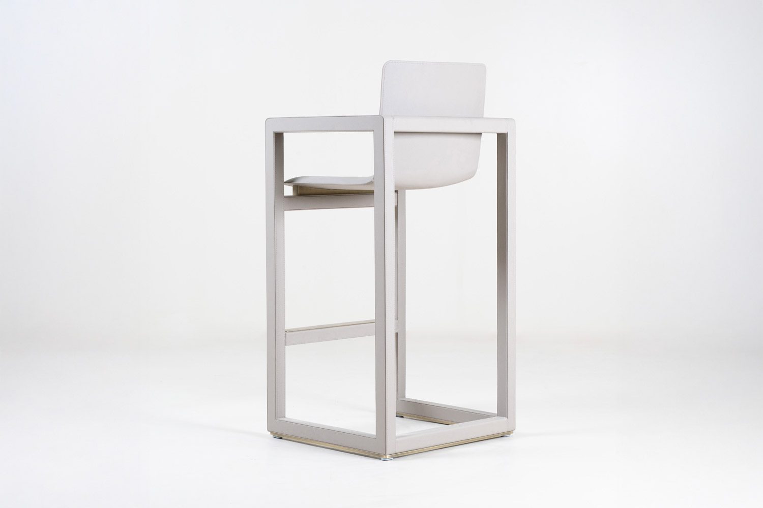 Cubus takes its name from the cubical structure that upholds the seat. Defined by the contrast of hard and soft, the understated ensemble of bold tubular frame softened by the plump upholstery of the suspended seat speaks volumes about the expertise in leather workmanship which is found in every detail. The antique metal connectors between the frame and the seat, uplifts the monochromatic material palette.