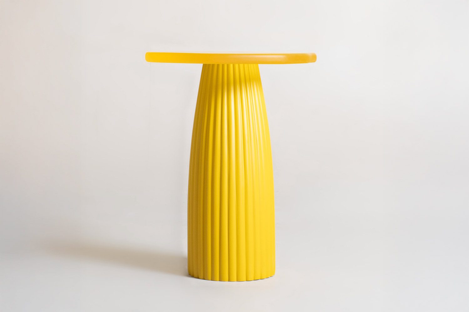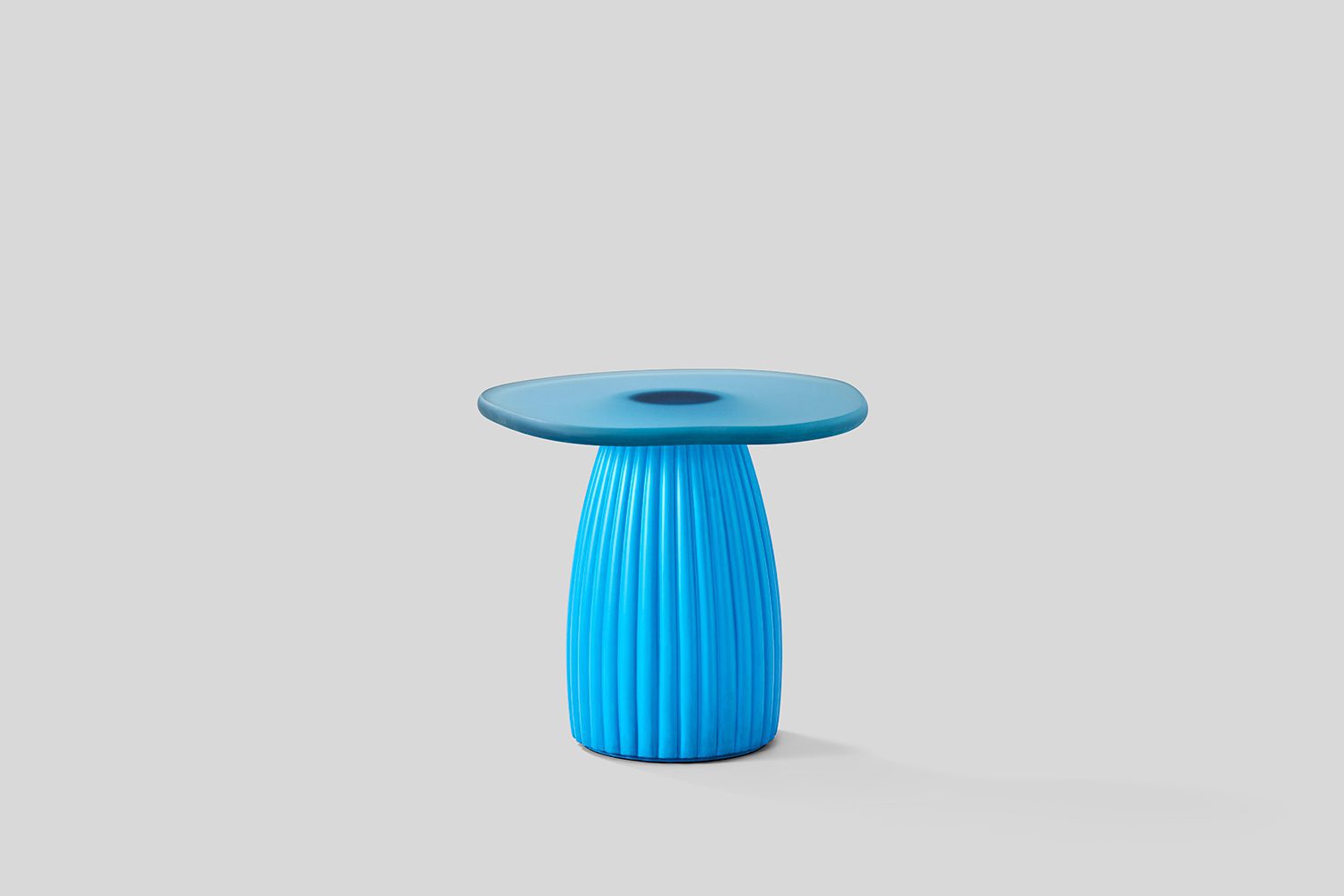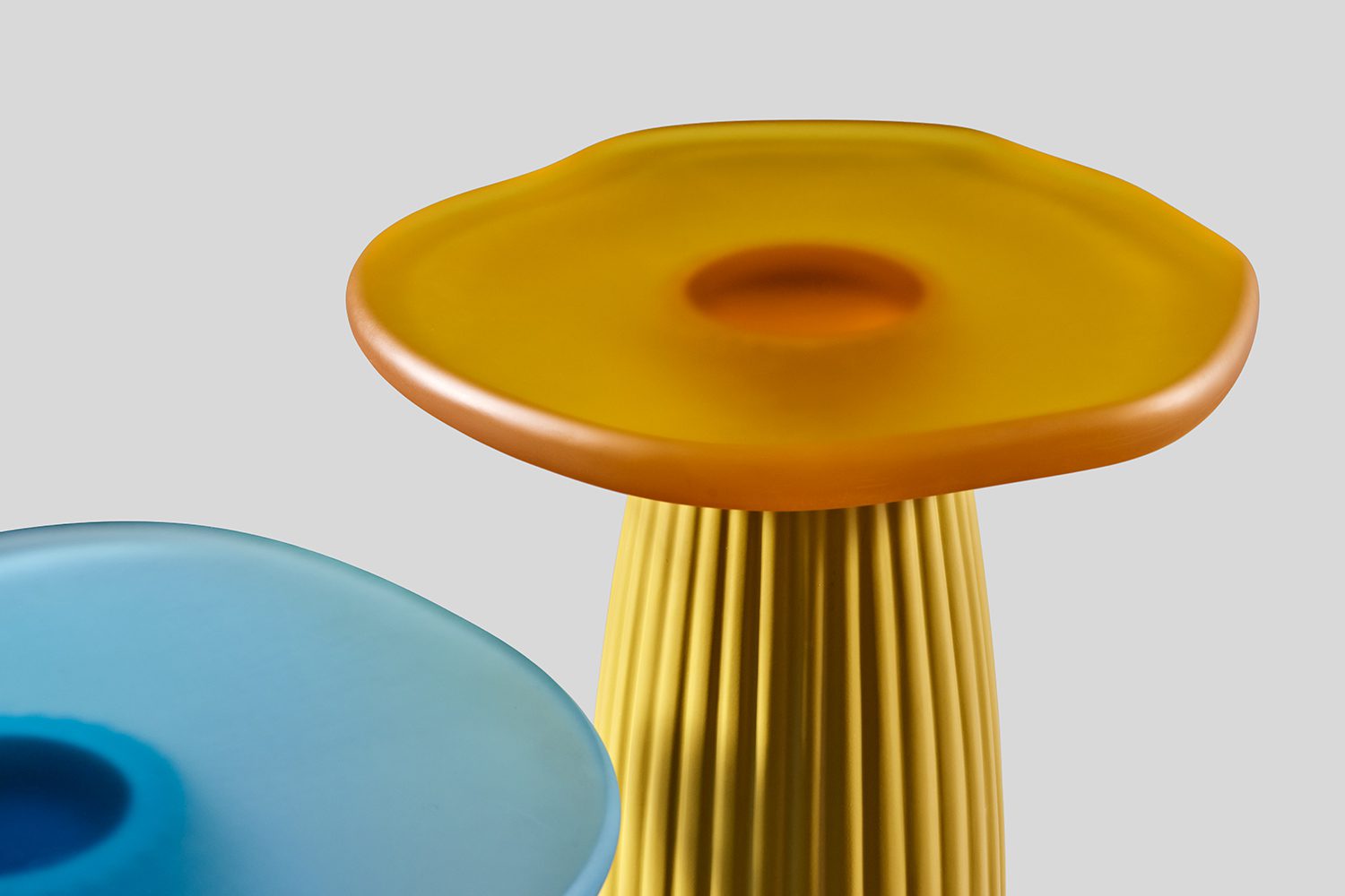 The Sago Tables embodies a synthesis of organic fluidity and structured form, drawing conceptual inspiration from the morphological adaptations of desert cacti. The series translates the visual and functional attributes of these resilient plants into a refined material composition. The table tops, crafted from tinted resin, exhibit a soft translucency that corresponds to the lacquered finish of the vertical structural elements, establishing a cohesive material relationship. The supporting framework, constructed from lacquered wood, features precisely articulated fluting details, evoking the rhythmic, linear growth patterns characteristic of cacti. This interplay between materials and form creates a dialogue between solidity and lightness, structure and fluidity. By abstracting elements from nature, the Sago series transcends conventional tables, positioning itself as both a functional entity and an exploration of biomorphic design principles.