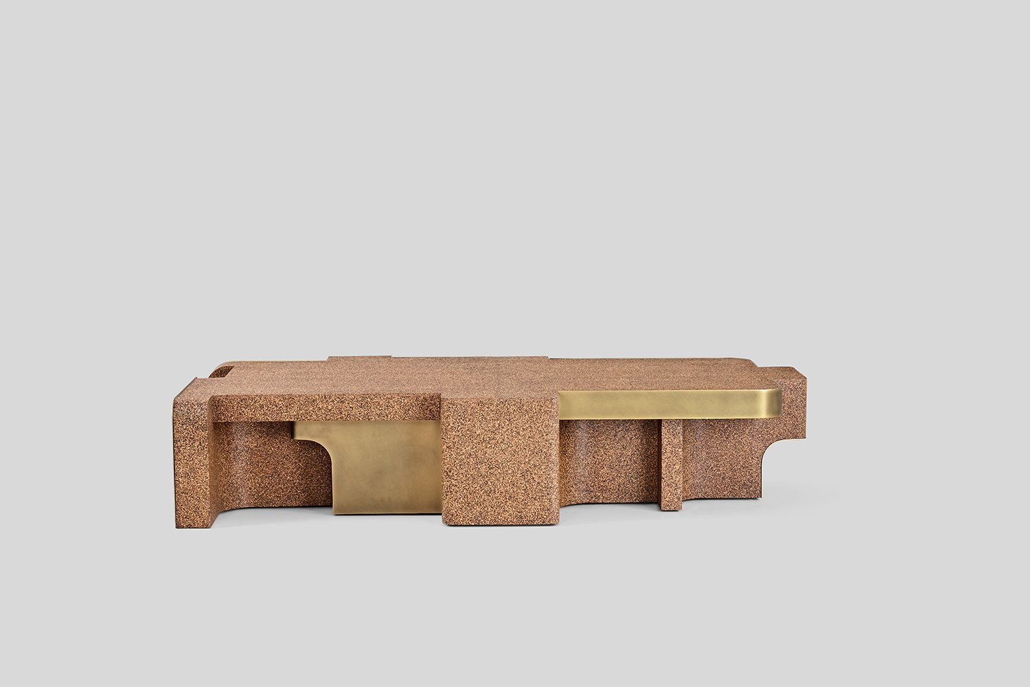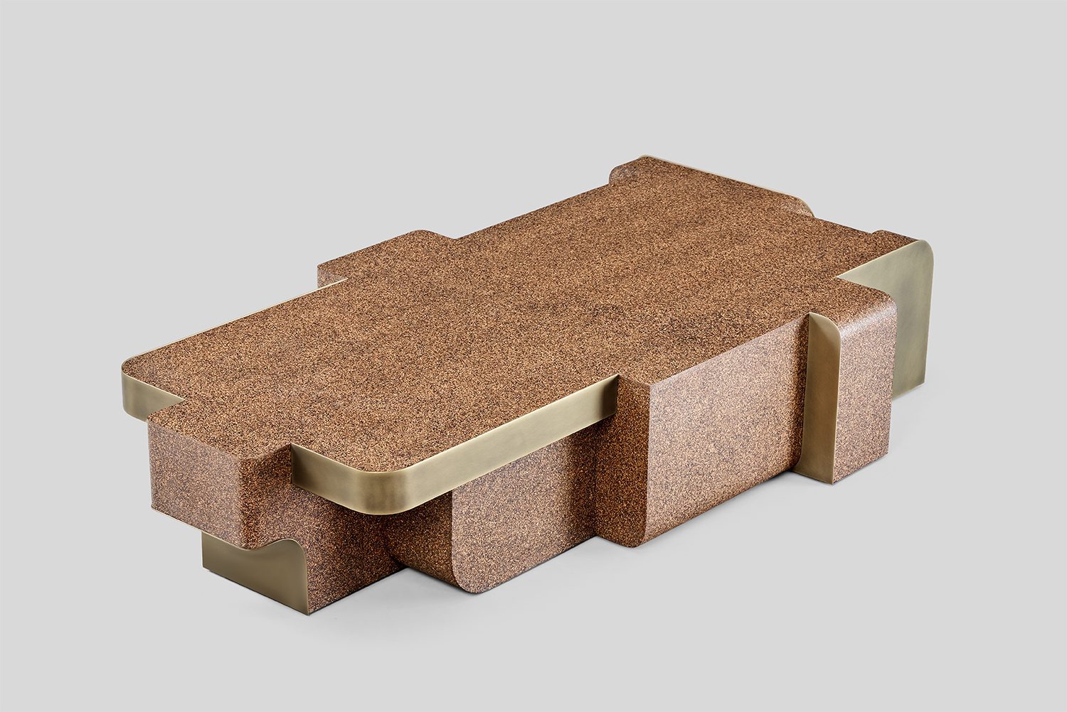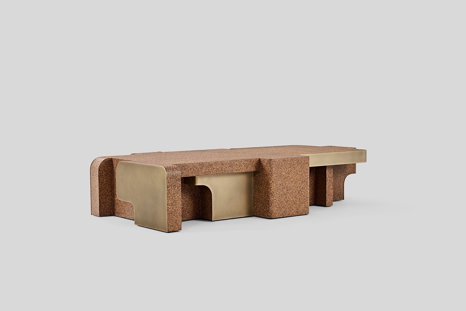 The Blocco Tables are a bold exploration of the architectural building construction process, crafted primarily from natural cork to emphasize sustainability and organic form. Inspired by zoning, cutting, and extruding, the design features clean, geometric lines and elevated surfaces that represent the dynamic layering of architecture. Subtle cuts and divisions highlight the zoning aspect, while select metal sheet highlights on some surfaces add a sophisticated contrast, symbolizing the precision and strength of structural elements. The combination of cork’s warmth and the metal’s sleek finish creates a striking balance of organic and industrial, making the Blocco Tables both an artistic statement and a functional addition to any space.