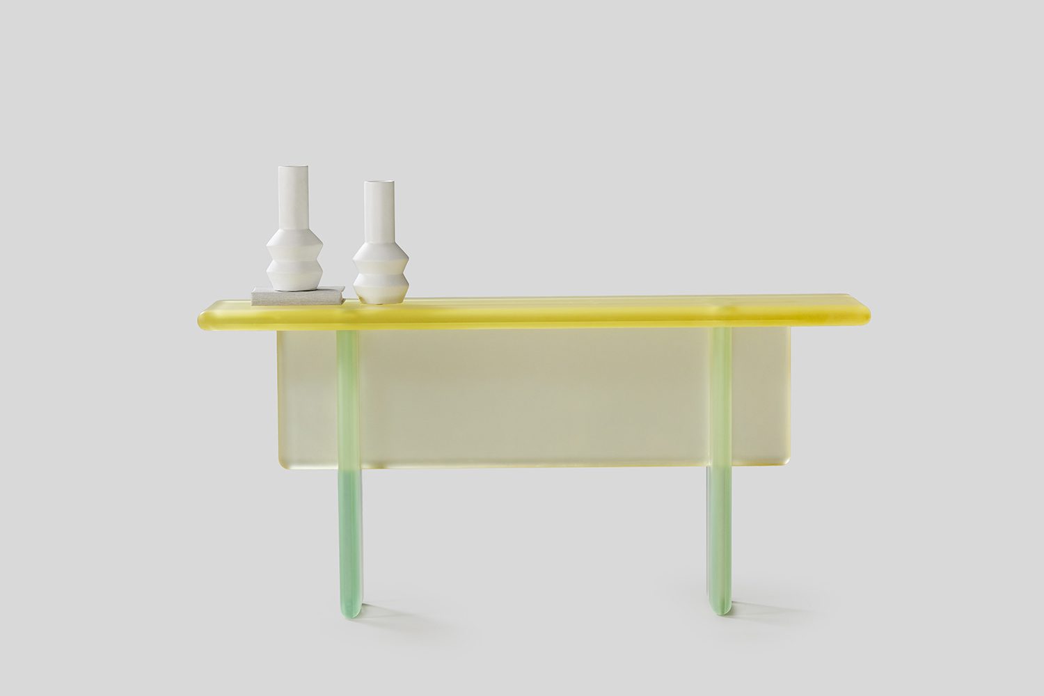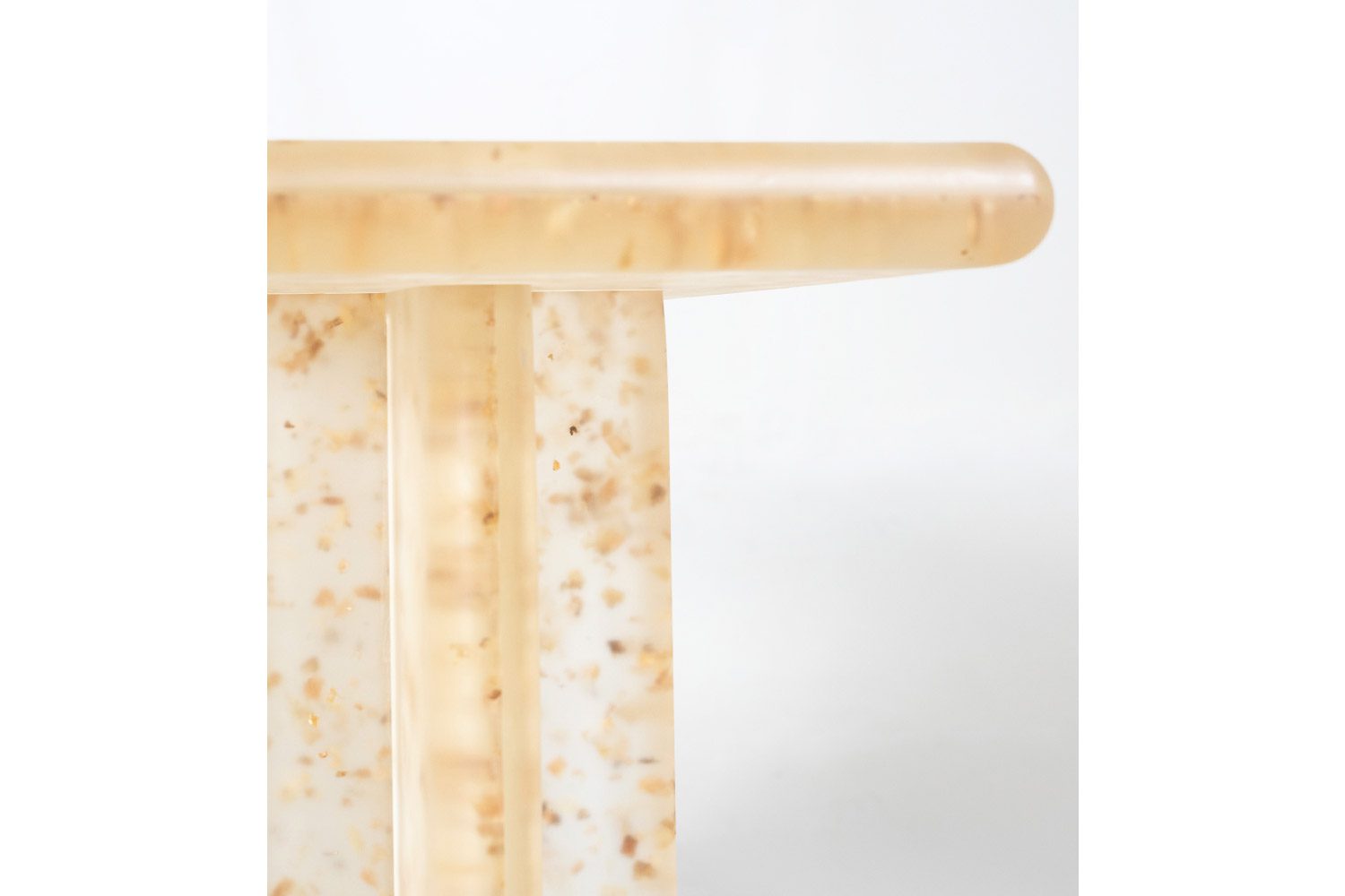 The Flou Console features trasluscent artefacts that play with light and shadow, offering a delicate balance between visibility and obscurity. The interplay with opacity creates a sense of mystery, encouraging a deeper appreciation of subtle textures and nuances. The consoles are available in various tinted resin shades. Additionally, the collection extends its material palette by incorporating upcycled materials within clear resin, creating truly artistic compositions that appear frozen in space and time. The series is designed not just as functional objects but as contemplative artefacts that bring a quiet, reflective beauty to any space. Through simple yet evocative forms, the series highlights that profound beauty is waiting to be discovered even in the most minimal designs.