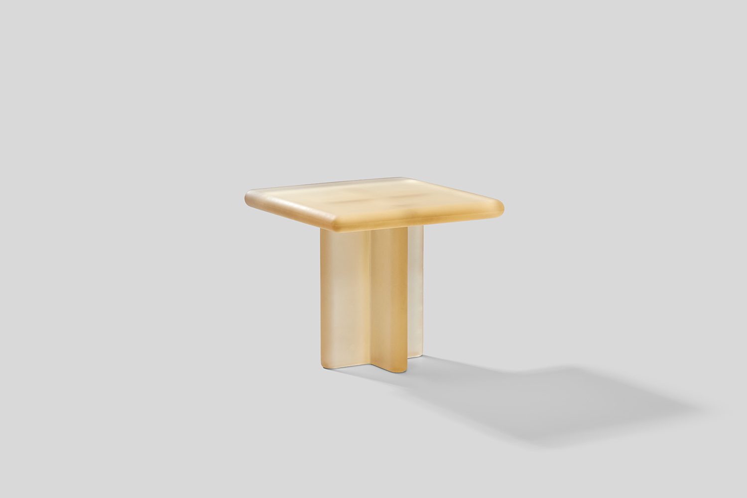 The Flou Tables features trasluscent artefacts that play with light and shadow, offering a delicate balance between visibility and obscurity. The interplay with opacity creates a sense of mystery, encouraging a deeper appreciation of subtle textures and nuances. The tables are available in various tinted resin shades. Additionally, the collection extends its material palette by incorporating upcycled materials within clear resin, creating truly artistic compositions that appear frozen in space and time. The series is designed not just as functional objects but as contemplative artefacts that bring a quiet, reflective beauty to any space. Through simple yet evocative forms, the series highlights that profound beauty is waiting to be discovered even in the most minimal designs.