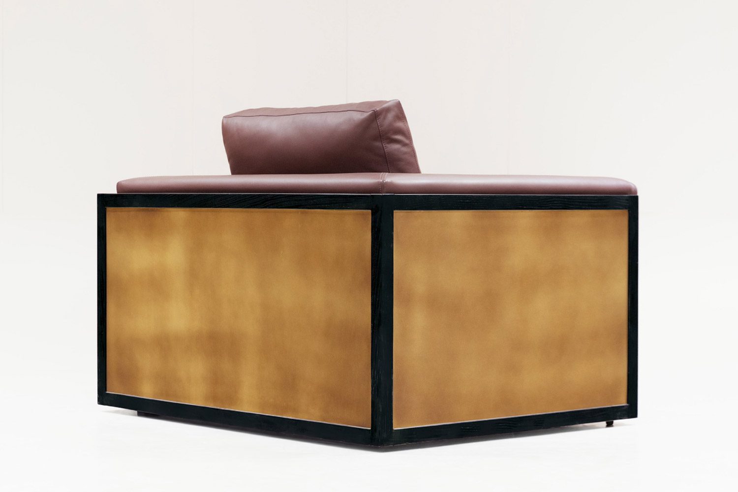 Elevo Lounge Chair / Sofa demonstrates luxury and style, this Lounge Chair seamlessly blends the finest materials – rich upholstery, metal panels, and warm wood – to create a truly show-stopping piece. The Lounge Chair’s sturdy wooden frame provides a solid foundation. The cushions, adorned with intricate stitching, invite you to sink in and indulge in unparalleled comfort. Metal panels with oxidation finishes are the highlight feature to the design, which a touch of sophistication and glamour. The Lounge Chair embodies the perfect fusion of luxury, comfort, and style, ensuring an unparalleled lounging experience.