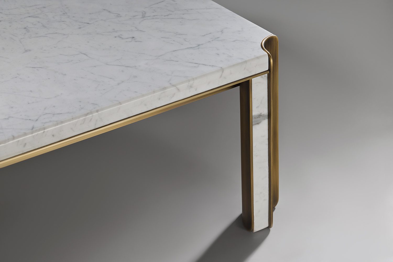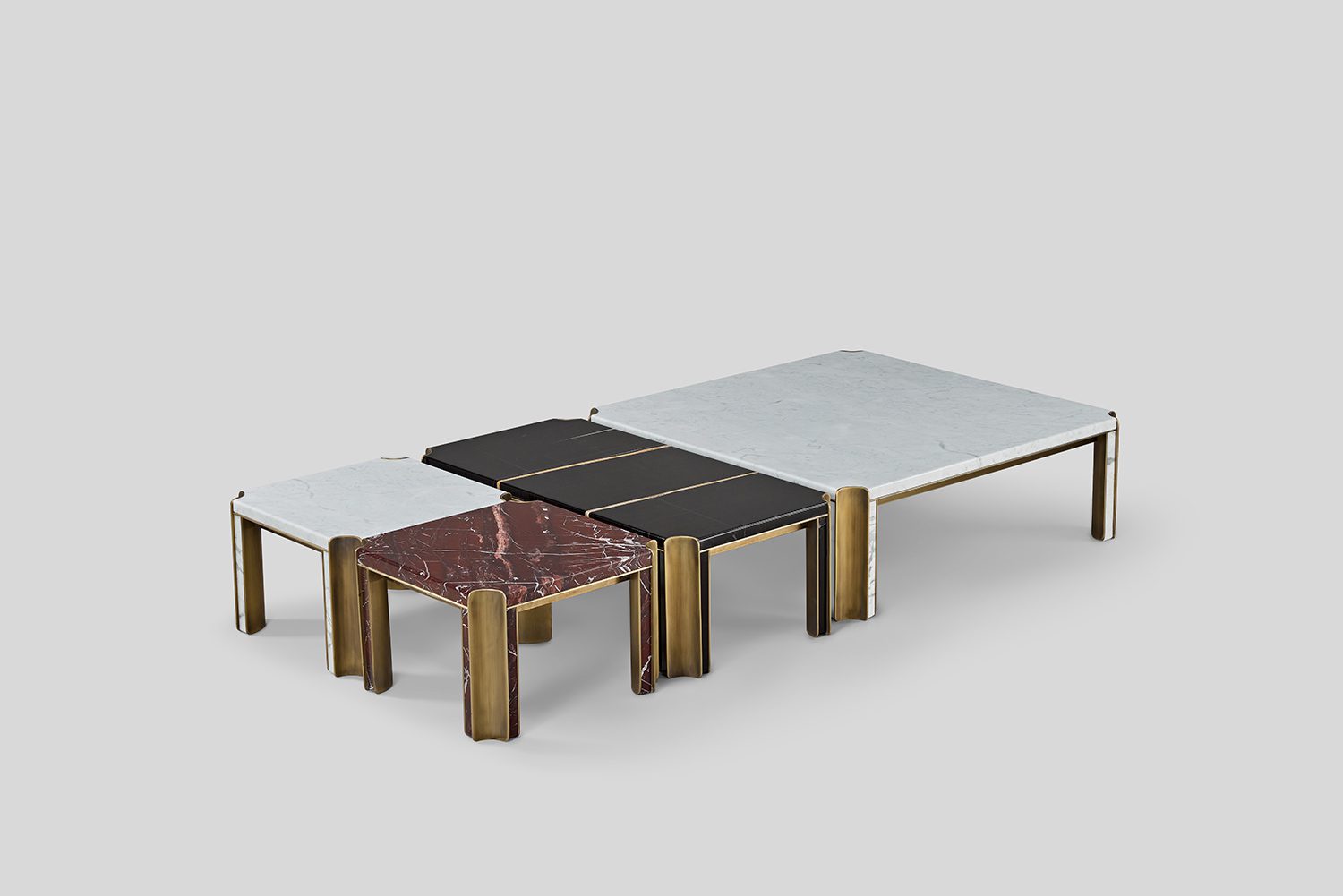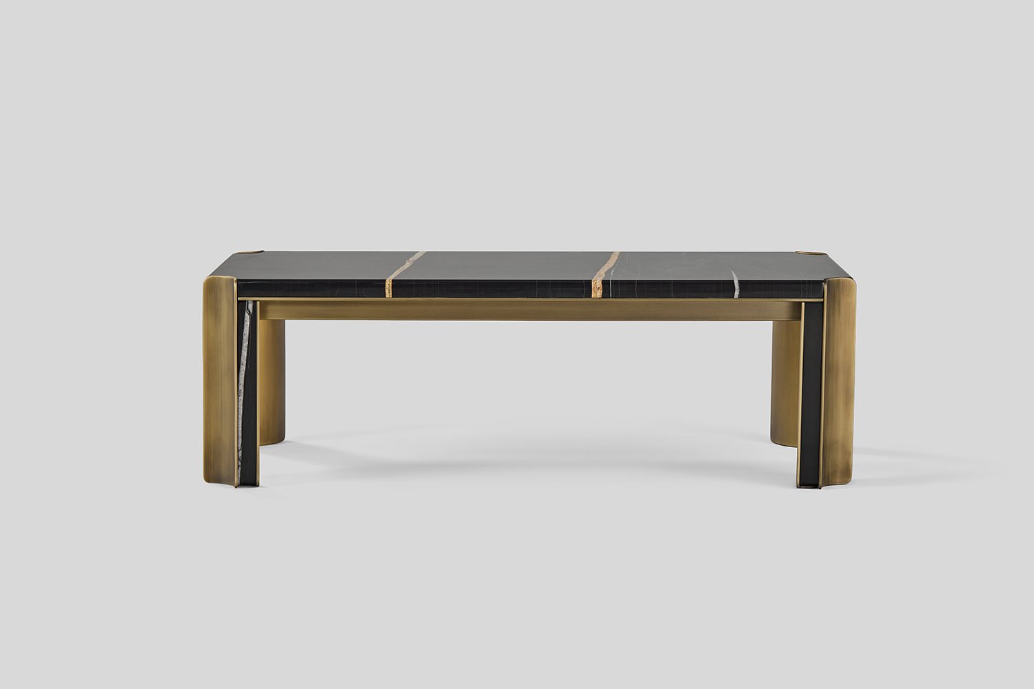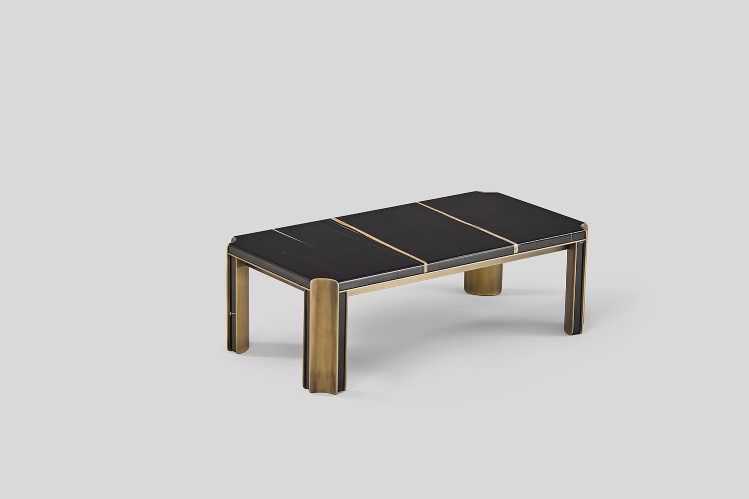 The Pietra Coffee Table exemplifies a harmonious integration of materials through its carefully composed metal framework and stone surfaces. The double metal legs are thoughtfully offset, creating a sense of rhythm and structure, while a stone inlay runs between them, reinforcing the table’s architectural language.