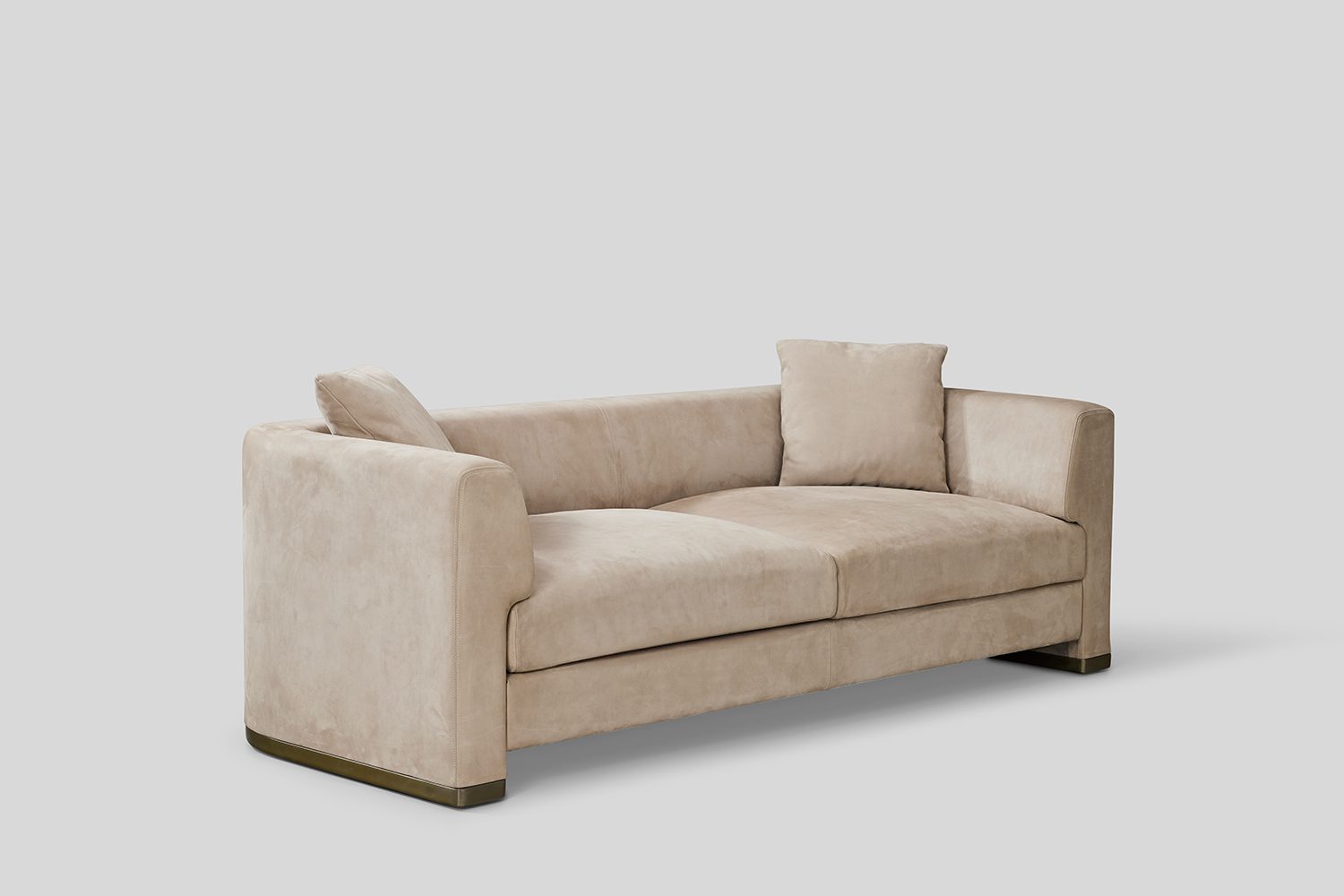 The Perch Sofa offers a modern and inviting seating solution. One notable characteristic of the sofa is the way its arm gently hugs the seat, providing both comfort and a sophisticated aesthetic. The Perch model sits elegantly atop a metal skirting, adding a touch of contemporary flair to its design.