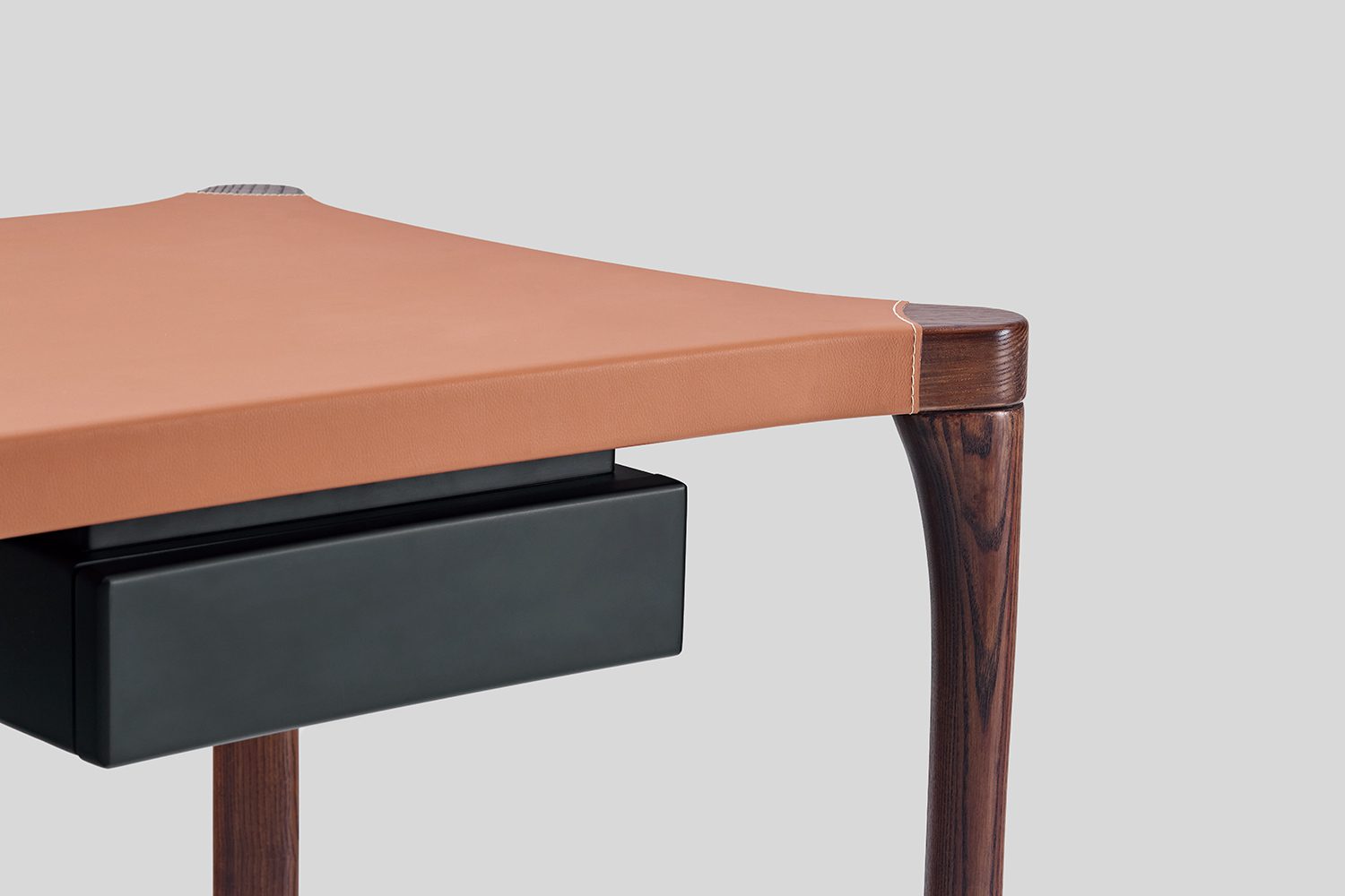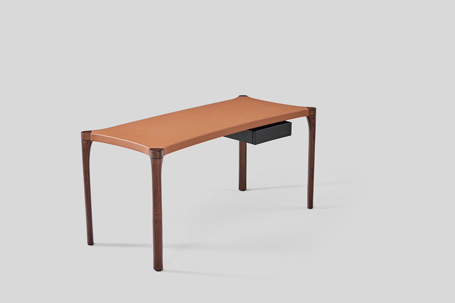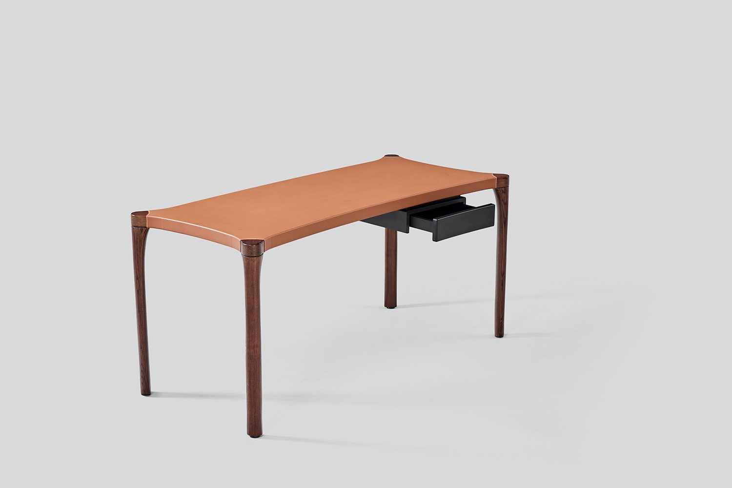 The Vincent Study Desk brings a playful twist to the classic workspace. The top features soft, rounded curves and graceful arcs, offering a sense of fluidity and openness. The leather surface on top feels like a perfectly tailored sleeve that wraps the desk. Below the table, a cantilevered drawer adds both intrigue and functionality, while the legs echo the gentle curves of the top, creating a fluid connection between surface and structure. Vincent isn’t just a desk—it’s a bold, eye-catching piece that brings a visual interest your study space.