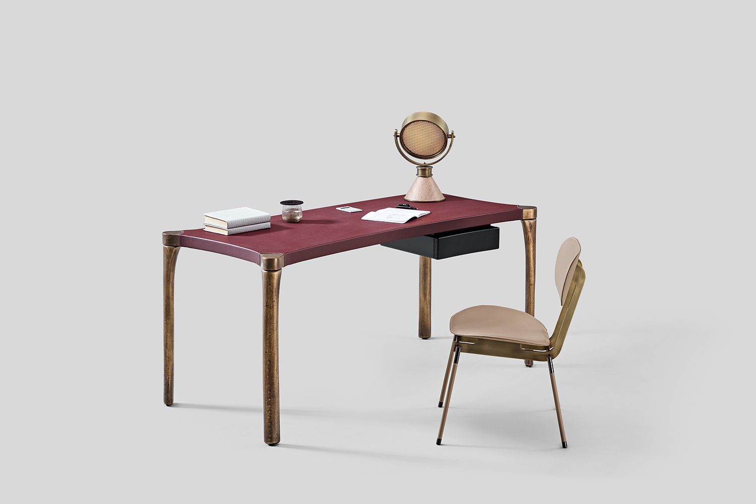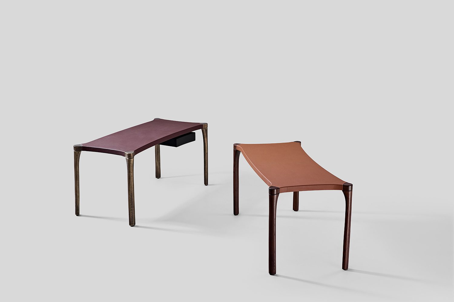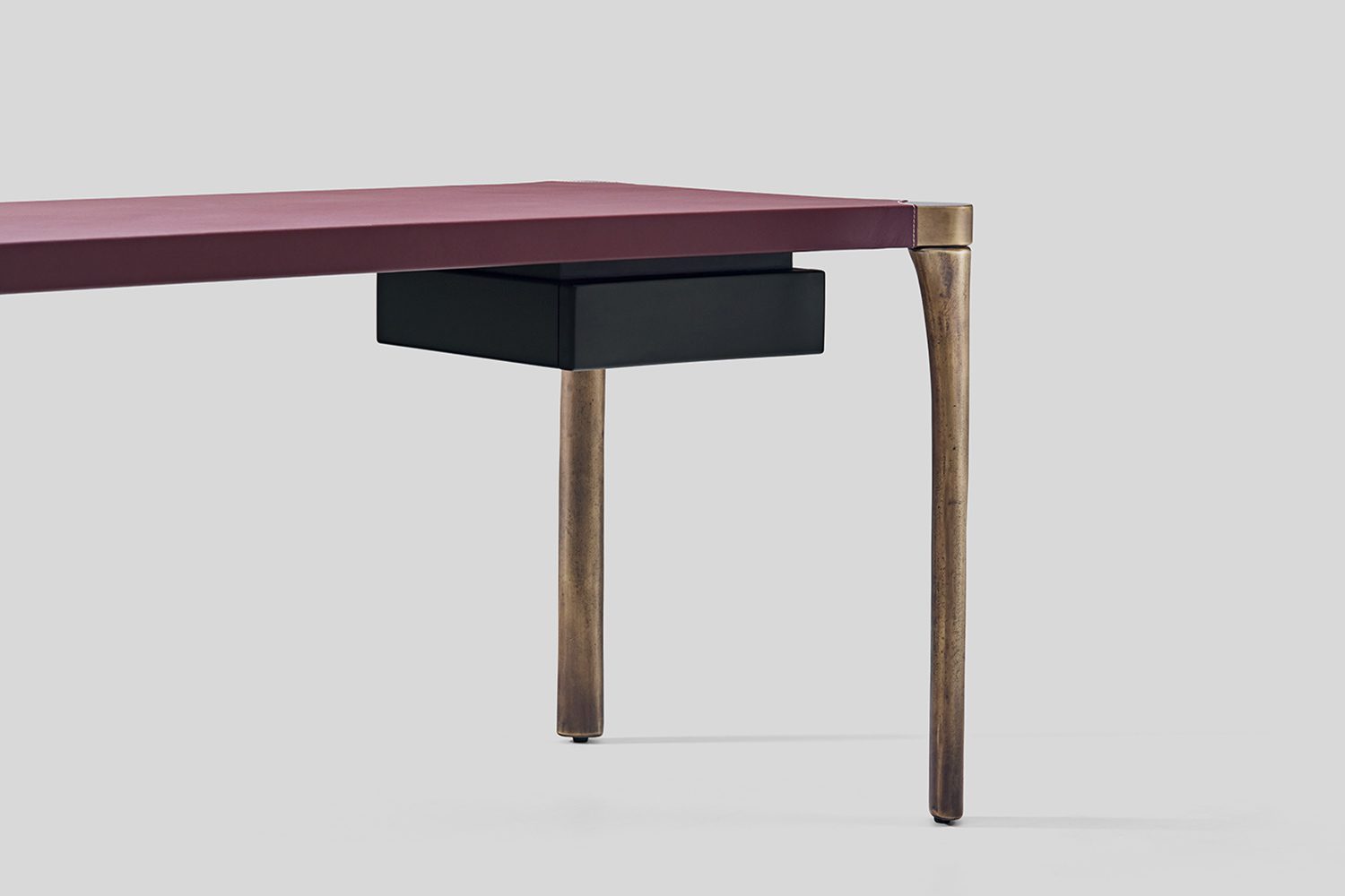 The Vincent Study Desk brings a playful twist to the classic workspace. The top features soft, rounded curves and graceful arcs, offering a sense of fluidity and openness. The leather surface on top feels like a perfectly tailored sleeve that wraps the desk. Below the table, a cantilevered drawer adds both intrigue and functionality, while the legs echo the gentle curves of the top, creating a fluid connection between surface and structure. Vincent isn’t just a desk—it’s a bold, eye-catching piece that brings a visual interest your study space.